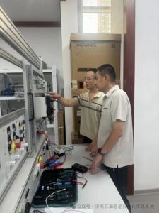 8月1日,除了针对工业生产中常用的PLC控制伺服系统和变频器展开学习外,依托汇海匠星自动化培训基地的优质资源与合作渠道,史丹利的学员们获得了宝贵的参观机会,由基地领导李总带队前往汇川总部进行参观。学员们深入了解了汇川在自动化领域的前沿技术与创新成果,实地感受了先进自动化设备的运行与应用,进一步拓宽了视野,对自动化行业的发展有了更直观、深刻的认识。参观结束后,学员们回到基地,结合白天的参观收获,继续投入到伺服系统和变频器的 “理论+实操” 学习中,不仅掌握了伺服电机的精准控制方法,还学会了通过变频器实现电机转速的灵活调节,为应对复杂工业场景打下了坚实基础。